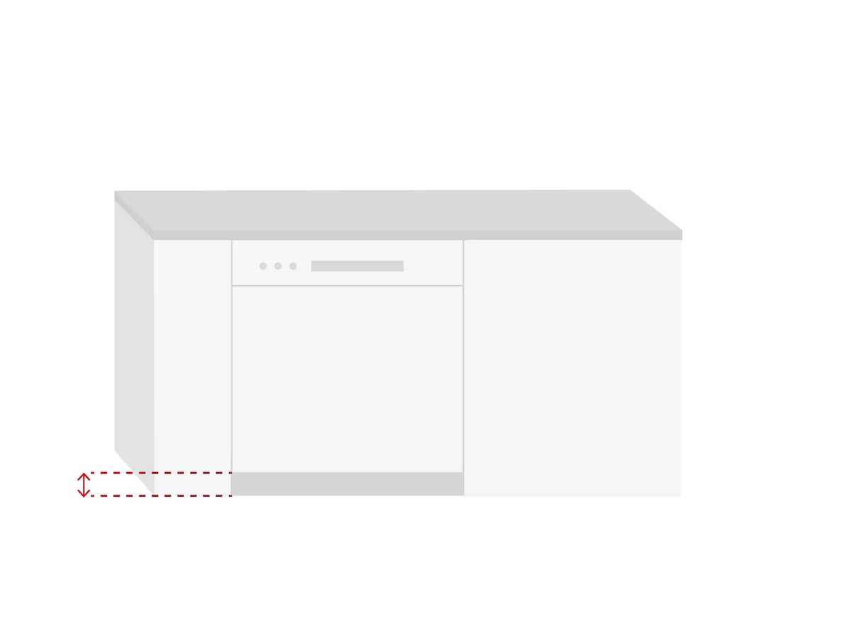 Want to open the dishwasher door without any issues? Measure the kitchen plinth. The height of your kitchen plinth is important when determining the type of door hinge for your dishwasher.