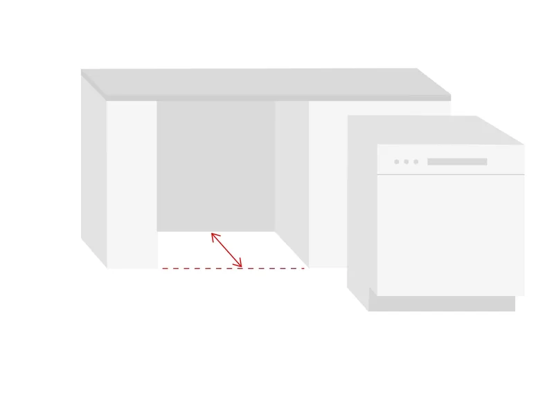 Next, measure the depth from the back wall to the front edge of the cabinet opening. Still have your current dishwasher installed? Then measure the depth of the countertop and subtract approximately 5 cm, so there is enough space for the connections at the back of the appliance.